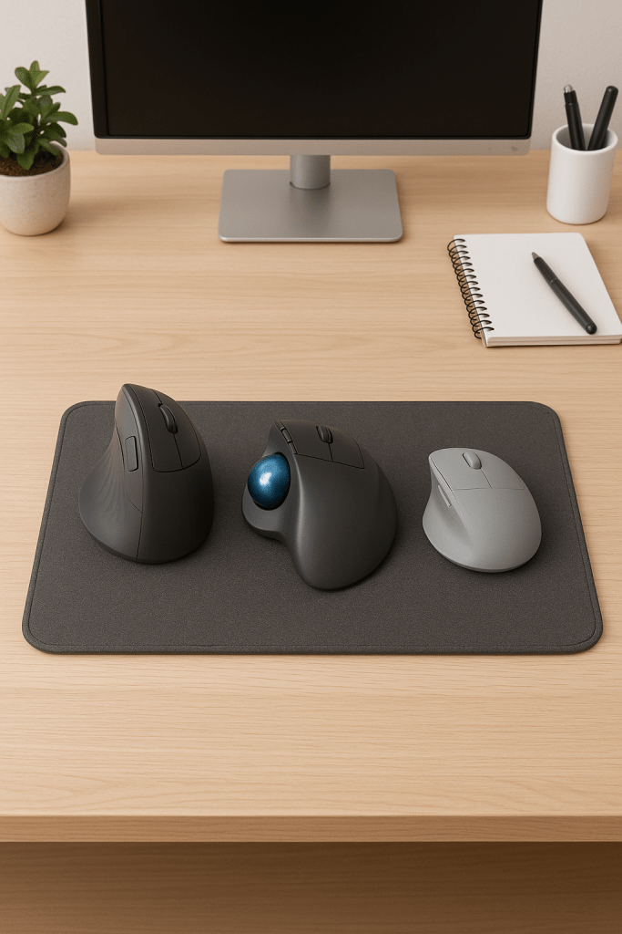 | Trackball | Small desks, precise control | Arm stays still; thumb/finger ball reduces shoulder reach |
