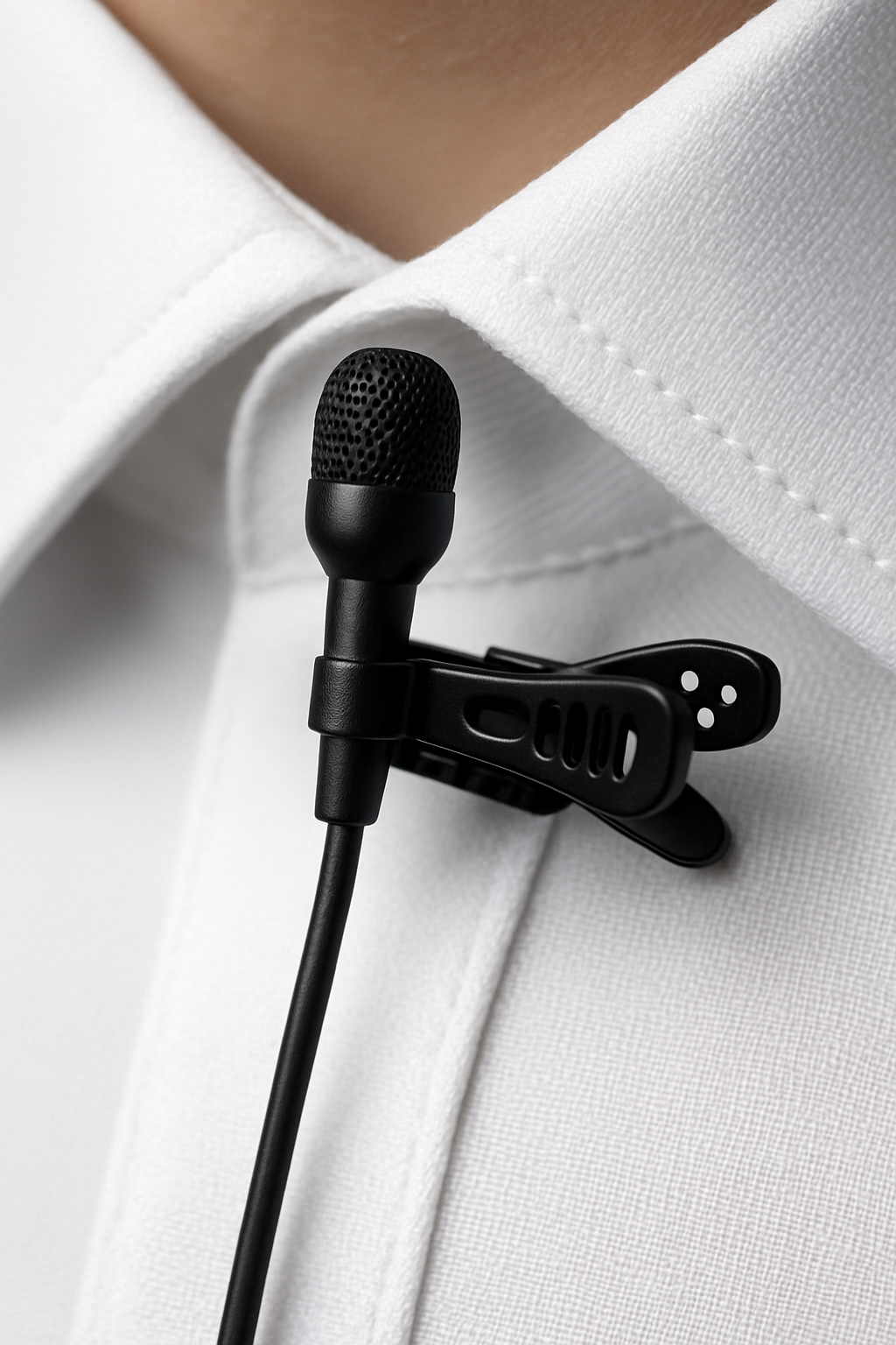 • Clip at sternum height; hide cable with a small loop