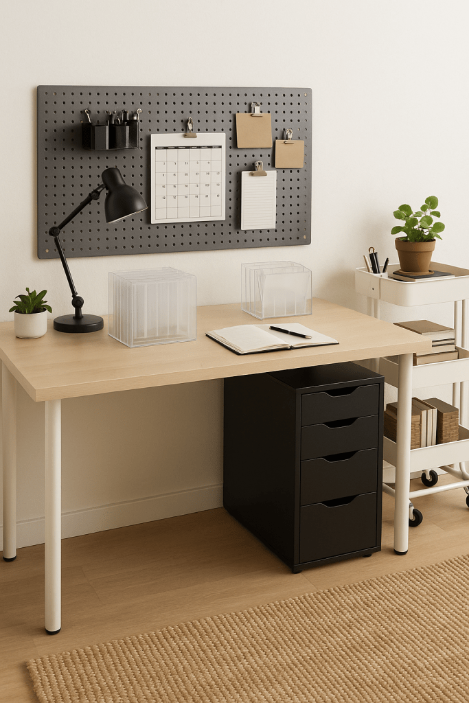Mount a metal pegboard behind or beside your desk for scissors, tape, cables, and small bins. Visibility prevents drawer‑of‑doom syndrome and speeds up resets at the end of the day.