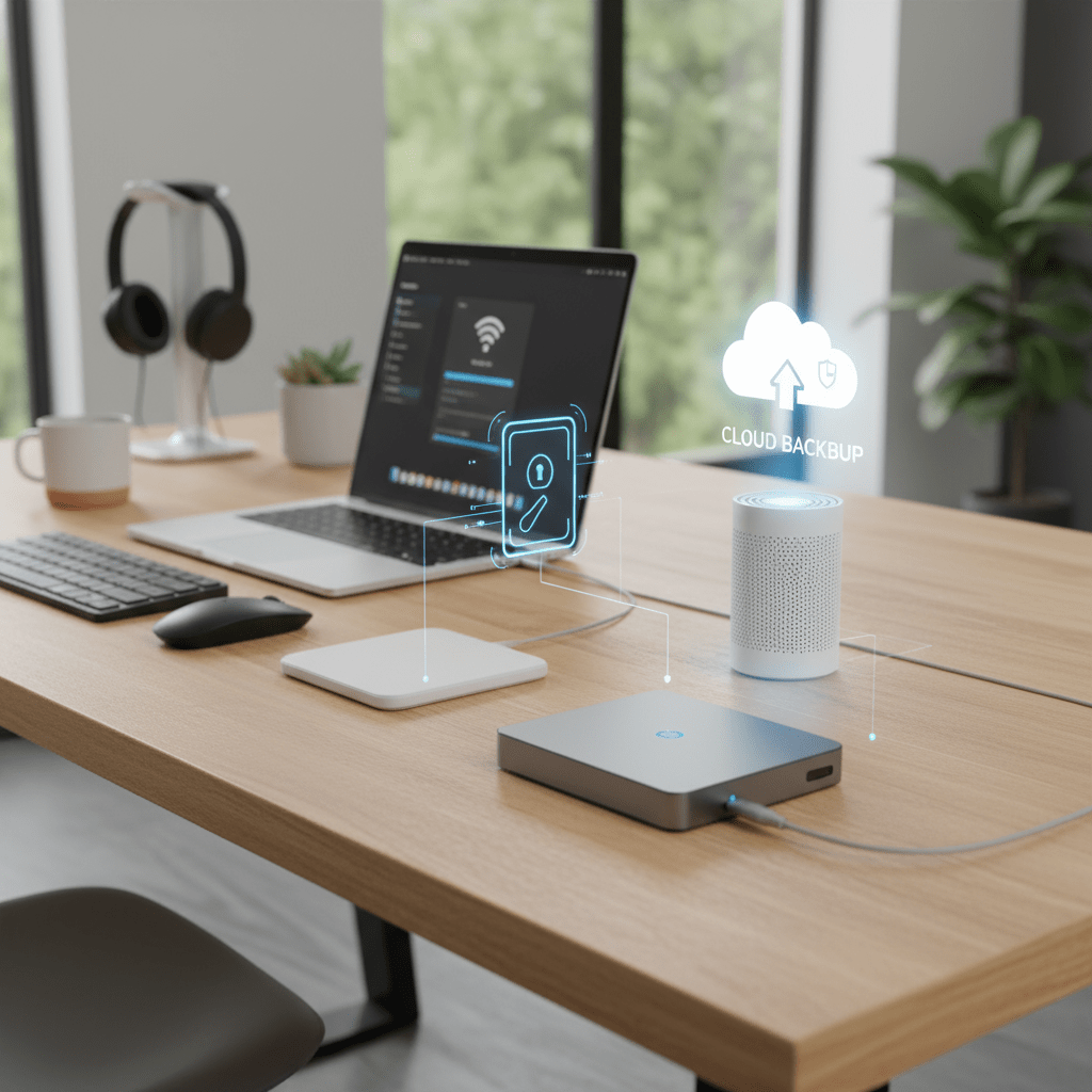 - Minutes 6–7: Enable your cloud backup or sync app (Backblaze, iCloud/OneDrive/Google Drive). Confirm it includes Documents/Desktop and your project folder.